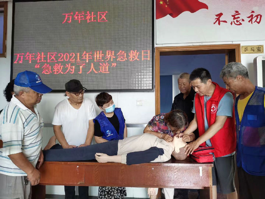 近日,万年社区的工作者宋建胜,同时也是江苏省红十字会救护培训师,为社区的党员、网格员、垃圾分类志愿者和物业人员开展急救培训。