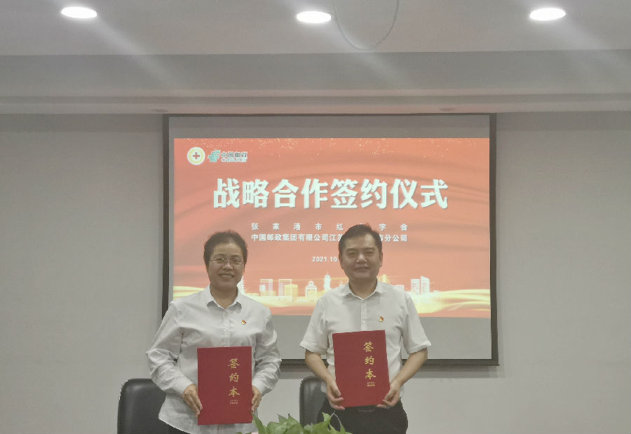 10月14日下午,张家港市红十字会与中国邮政集团有限公司江苏省张家港市分公司举行战略合作协议签约仪式。