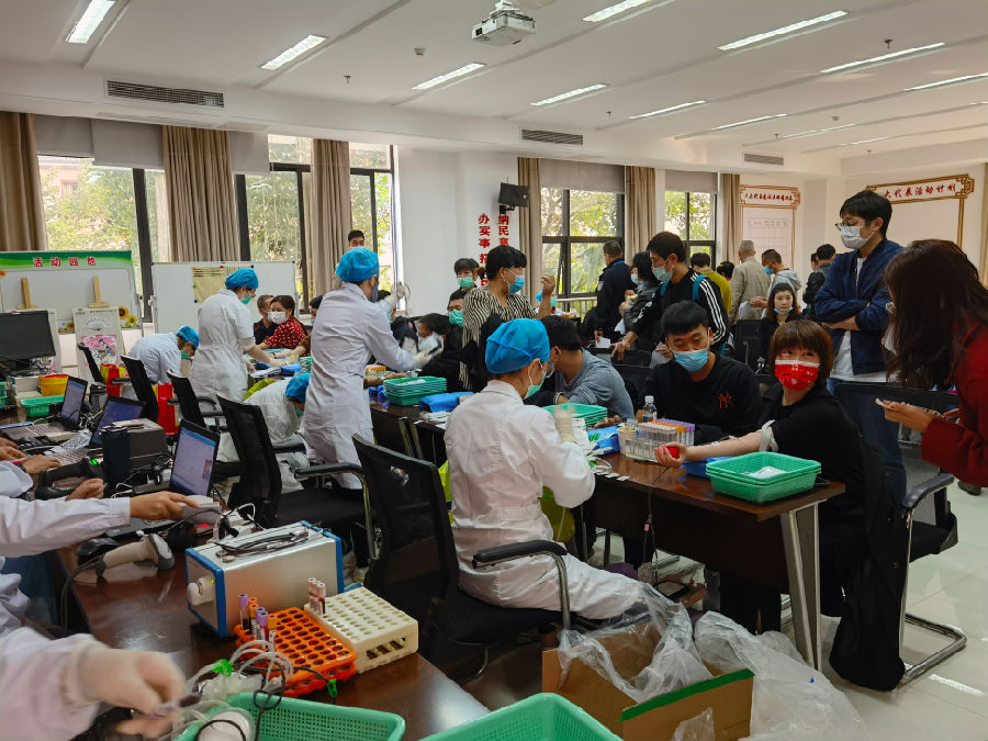 一大早,献血车就来到社区公楼前,在血液中心工作人员的指导下,献血人员按照顺序认真填写无偿献血登记表、录入个人信息、接受血压测量、血型检验等相关检查,合格后采血,以实际行动诠释了博爱精神。