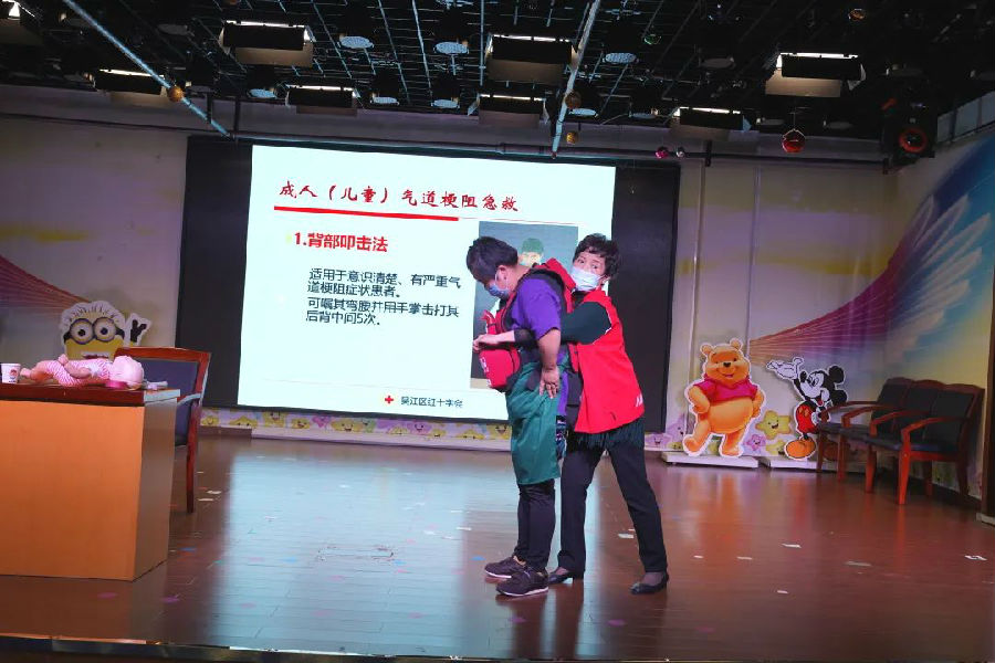 在培训中,沈老师从“海姆立克急救法”的起源、急救原理、案例征象以及不同年龄阶段急救的具体方法和自救措施等方面,细致全面地讲解了急救理论知识。