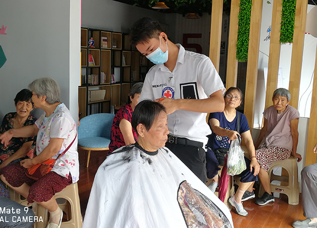 为老服务具体内容根据老人的生活习惯、身体状况、基本需求为出发点进行量身定制。红十字志愿者们在每月的10号、20号,一月两次为老人进行血糖血压的测量。如有行动不便、当月身体抱恙的老人,志愿者们会先电话了解情况,并询问是否方便上门帮忙测量血糖血压;每月的10号,还有来自美发行业的红十字志愿者来到社区为老人们爱心理发。