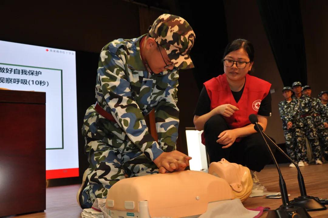 此次新生培训共覆盖全市13所高中及大专院校,培训人数共计10236人。培训过程中,红十字救护培训师重点为同学们讲解了心肺复苏、气道异物梗阻、AED使用、脚扭伤等知识和实践操作,培训内容贴合学生生活实际,受到同学们的一致欢迎和好评。同学们纷纷表示:“这次军训我们学会了心肺复苏救护方法,懂得了如何自救,也增强了救护他人的信心,当别人需要帮助时,我们就能该出手时就出手了!”