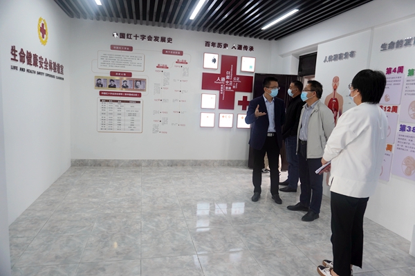 调研组一行调研了西北工业大学太仓校区红十字工作推进情况,实地察看了浏河明德初级中学“红十字生命体验教室”、“红十字生命救助站”建设使用情况,以及太仓“南园”“红十字生命救助站”投用情况。还了解本年度“博爱家园”建设和各项工作开展情况。