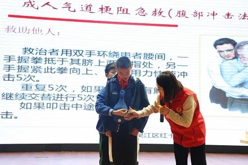 11月16日,区红十字救护培训师徐敏莉为江苏省吴江实验小学太湖校区六年级师生开展了一堂红十字应急救护课。