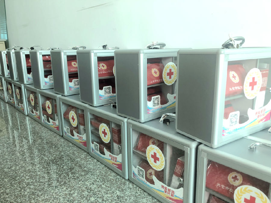 便民箱里放有碘伏棉棒、创可贴、口罩、绷带等急救用品,同时摆放了无偿献血、献造血干细胞、急救知识等宣传资料,一方面方便有急需的客户使用,为客户解决燃眉之急,彰显邮政爱心服务,同时也拓展了红十字会在全市的服务“窗口”,方便区镇群众就近获得相关资料。