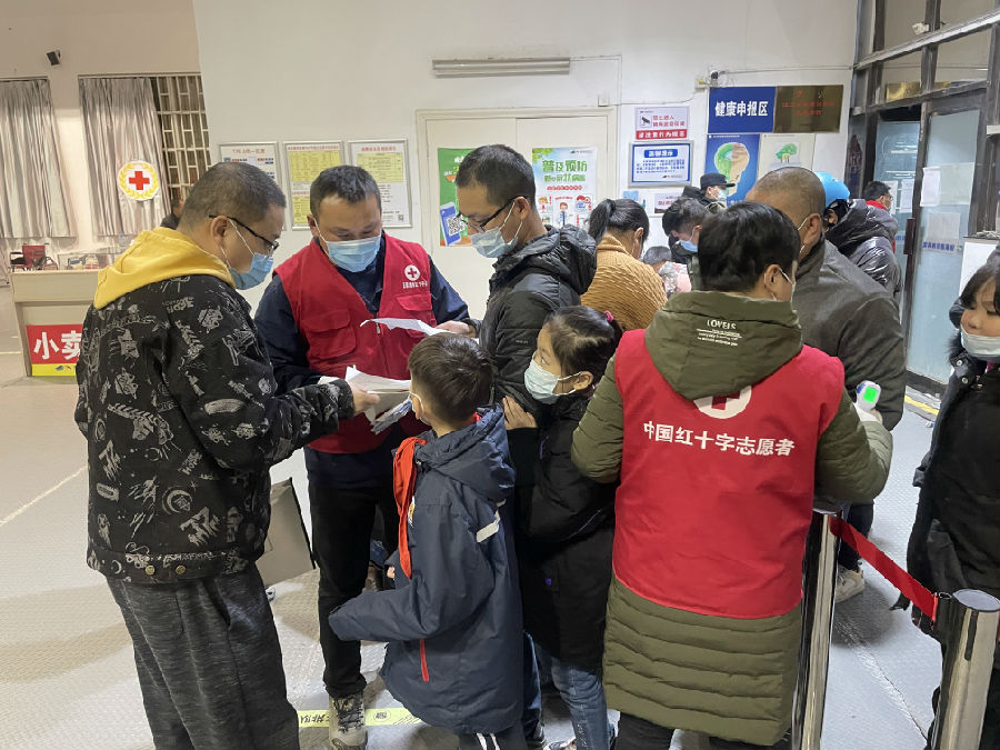 万众一心、心手相牵,感谢每一位红十字志愿者的辛勤付出,无论是迎来送往还是默默值守,你们的身影总是那道最靓丽的风景!(孙雯)