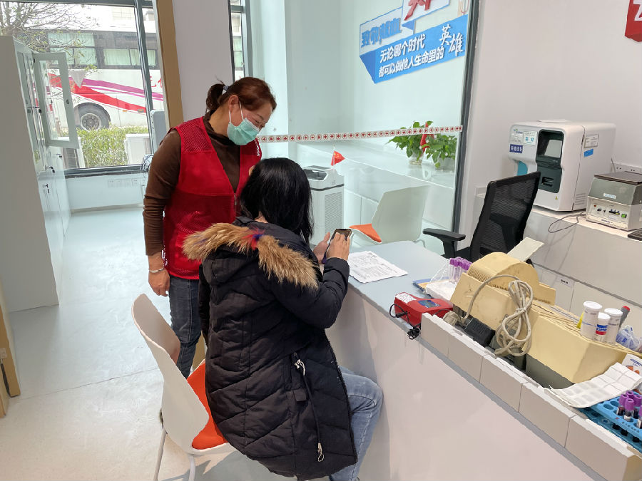 志愿者们利用元旦假期、周末业余时间,到昆山大润发献血屋、正阳桥献血点、昆山市红十字会血站参加志愿服务。一方面,志愿者们为献血者提供服务引导,指导献血者填写表格,为献血者倒茶送水;另一方面,向献血者宣传造血干细胞知识,希望他们能留取血样加入中华骨髓库。