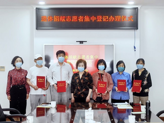 5月7日上午,常熟市6位报名捐献遗体的志愿者和他们的家人一起来到市红十字会,办理完相关手续,了却一生中一桩重要的心事。