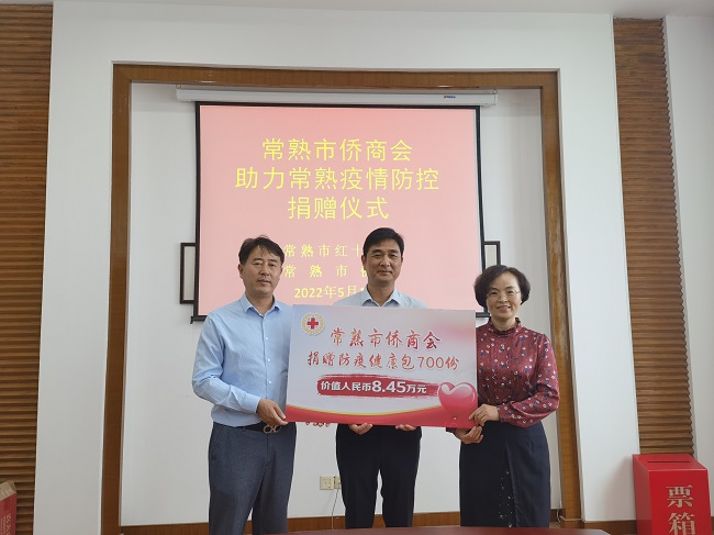 活动现场,常熟市侨商会通过常熟市红十字会捐赠防疫健康包,价值8.45万元,定向用于常熟市侨界疫情防控。