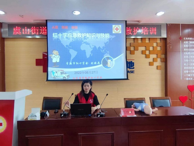 6月27日,常熟虞山街道红十字会在虞山街道甬江社区红十字应急救护培训基地举办了“救”在身边——2022年首期红十字初级救护员培训班。