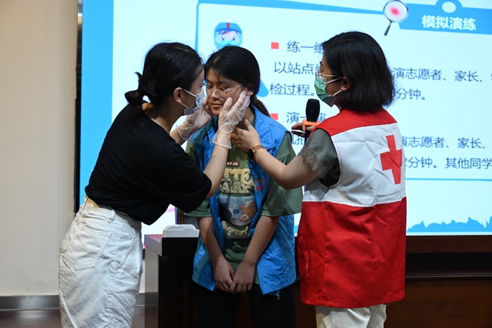 为进一步规范志愿者日常班务管理,加强爱心暑托班在学员卫生保健管理上的规范性与科学性,有效提高暑托班站点志愿者的健康安全意识,7月5日,太仓市红十字会邀请市第一人民医院儿科专家走进暑托班志愿者培训的现场,采用现场讲解+实战模拟的方式,给130余名志愿者及社工开展了手足口病诊疗指南解读的专题培训。