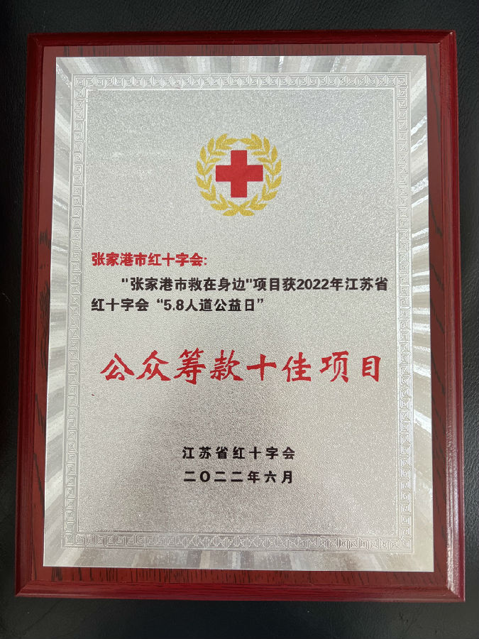 近日,江苏省红十字会通报表扬了一批2022年江苏省红十字会系统“5•8人道公益日”活动先进集体和项目。张家港市红十字会发起的“张家港救在身边”项目获评十佳项目。