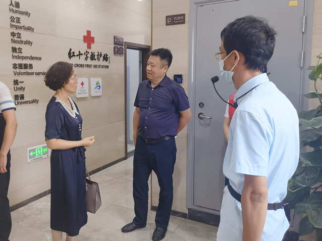 孙步霖一行先后来到琴川街道颜北社区博爱家园、虞山街道甬江社区博爱家园、常福街道景泰社区博爱家园,参观博爱家园活动阵地,了解社区各项红十字工作开展情况,社区负责人对开展的特色服务项目作详细介绍。在尚湖景区红十字救护站,一行人主要参观了医务室、接待室、母婴室等阵地,并详细了解了救护站内配置的手提医用急救箱、红十字救援背包、AED、简易折叠式担架等急救设备配置情况。