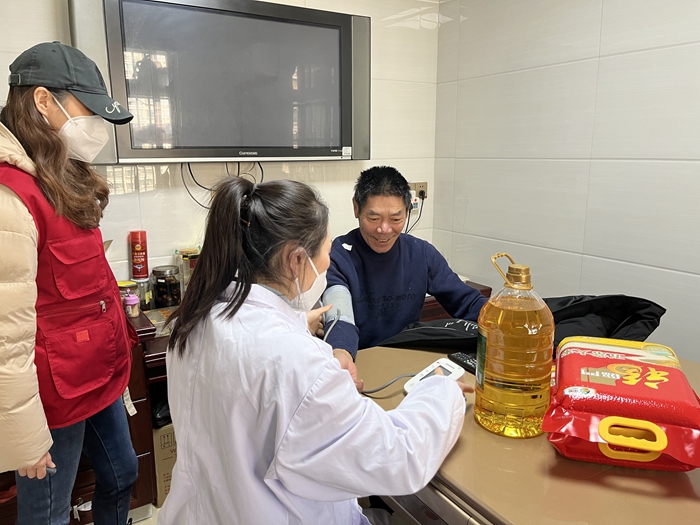 1月12日下午,市红十字会常务副会长丁浩一行来到困难户家中开展慰问活动,给他们带去了慰问品及春联,并祝愿他们过个幸福美满的春节。结合慰问活动,各区镇红十字志愿者积极开展便民服务行动,以高龄独居老人、残疾人、患病人员等特殊群体为重点,主动上门走访,提供打扫卫生、送“福”到家、读报、爱心义诊等志愿服务。