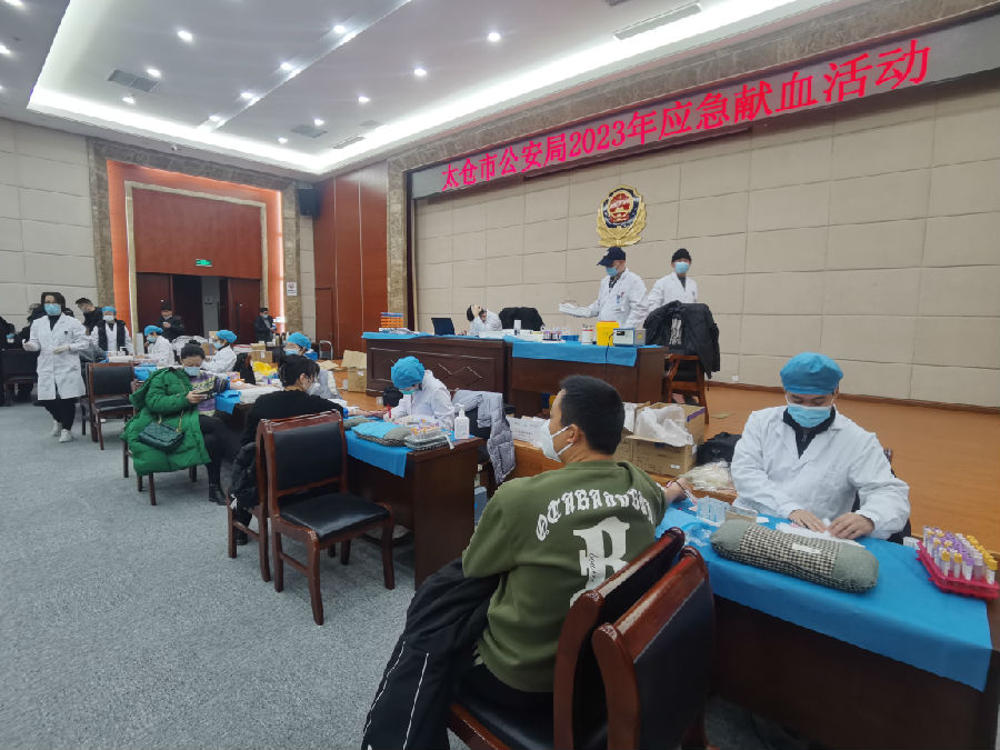1月17日,太仓市公安局组织民警、辅警开展无偿献血活动。大家纷纷主动报名,加入献血队伍。