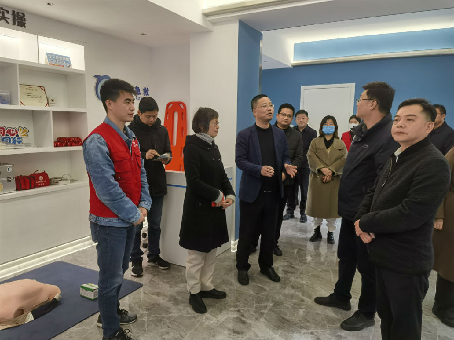 随后,考察组来到南丰镇红十字爱心街参观,对海豚急救培训示范基地给予了高度评价。考察组认为基地整合了社区志愿服务力量,并辐射到周边需要医疗救护的社区,对提高急救成功率和居民急救知识普及率有很大帮助。