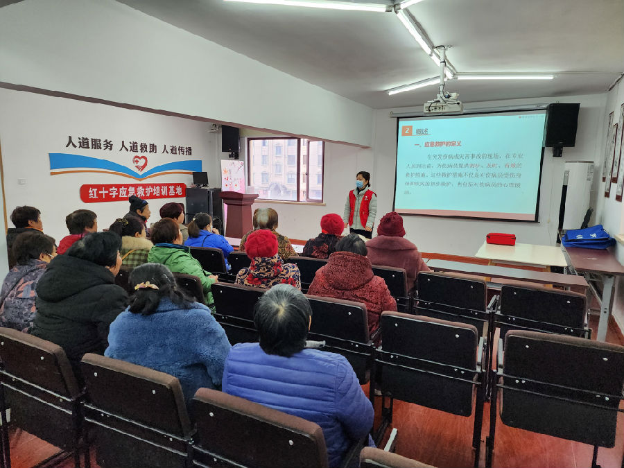 2月23日上午,张家港市永新社区红十字会邀请了红十字救护培训师在永新社区红十字博爱家园开展急救培训。