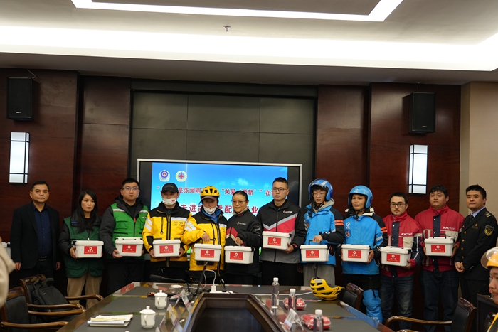 活动现场,市红十字会常务副会长丁浩,市场监督管理局党委委员、副局长朱爽秋为5个配送平台的配送员们发放急救箱以及人手一个急救包,“由于外卖骑手们职业的特殊性,他们接触的人群范围很广,将急救知识和装备带给他们,希望他们能够在紧急关头用科学方式施以援手,帮助他人。”