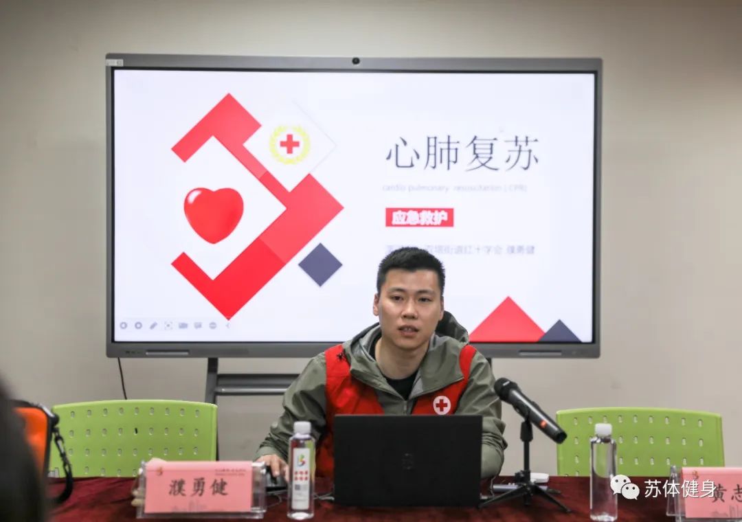近日,苏州市市民健身中心与姑苏区双塔街道红十字会合作开展AED急救知识培训,赋能中心“苏体健身志愿者”团队成员(中心全体人员、物业公司全体人员、全体救生员),保障健身安全。