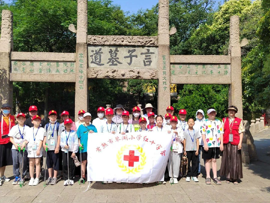 6月11日上午,冒着炎炎暑热,一支红十字志愿服务小队穿梭在亮山工程,他们头戴红色志愿帽,手拿垃圾钳,时不时弯下腰来捡起垃圾,又继续埋头前进,他们是来自常熟琴湖小学的“琴花”志愿服务队。