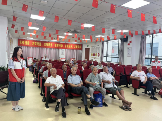 8月22日上午,吴江区七都镇红十字会联合庙港社区博爱家园组织工作人员、志愿者及社区居民一同收看《颈肩痛的预防及自我养护》网络直播课。