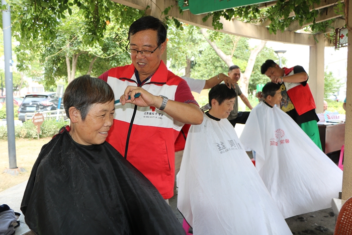 活动邀请常熟市第五人民医院医生为群众科普医学知识,为现场群众普及心肺复苏、气道梗阻等急救技能;中医师为居民详细检查身体,分析病情,讲解生活中的注意事项,解答群众提出的关于老年病、常见病的预防和诊治方法;博爱使者志愿服务队的红十字志愿者为老年居民提供爱心义务理发、磨刀等服务,让居民们感受党和政府的温暖与关怀。