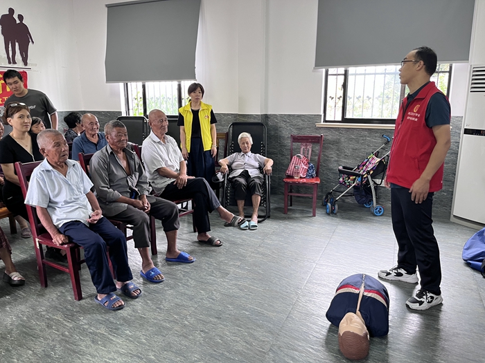 “呼吸心跳停止要怎么抢救?异物卡喉要怎么处理?”9月20日下午,红十字救护培训师葛文有来到七都镇隐读村晏斗老年活动室,为大家讲解应急救护知识。