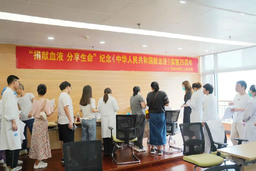在《中华人民共和国献血法》实施25周年之际,苏州九院组织开展无偿献血活动,践行“人道、博爱、奉献”的红十字精神,展示医者仁心、大爱无疆的高尚情怀。