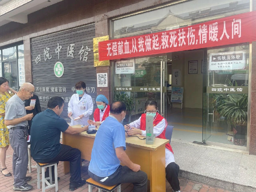 9月27日,吴江四院还组织职工向居民宣传《中华人民共和国献血法》,积极推进无偿献血工作,呼吁大家伸出援手、捐献热血,并对居民开展免费血压、血糖测量等义诊服务。(薛飞)