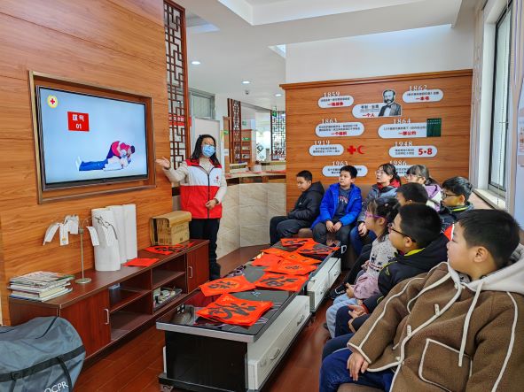 近日,姑苏区苏锦街道新天地家园北社区红十字会在博爱家园内组织了一次红十字运动知识宣传,邀请红十字志愿者帮助辖区青少年们更好地了解人体结构和器官分布。