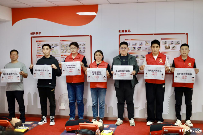 在现场签约的同时,为提升应急救护能力,由姑苏区红十字会主办,久护应急救护服务社承办的应急救护友谊赛在石路博爱家园举办。本次比赛邀请了区红十字会副会长李宝华和区红十字会应急救护培训师薛花、李俊绣担任评委。