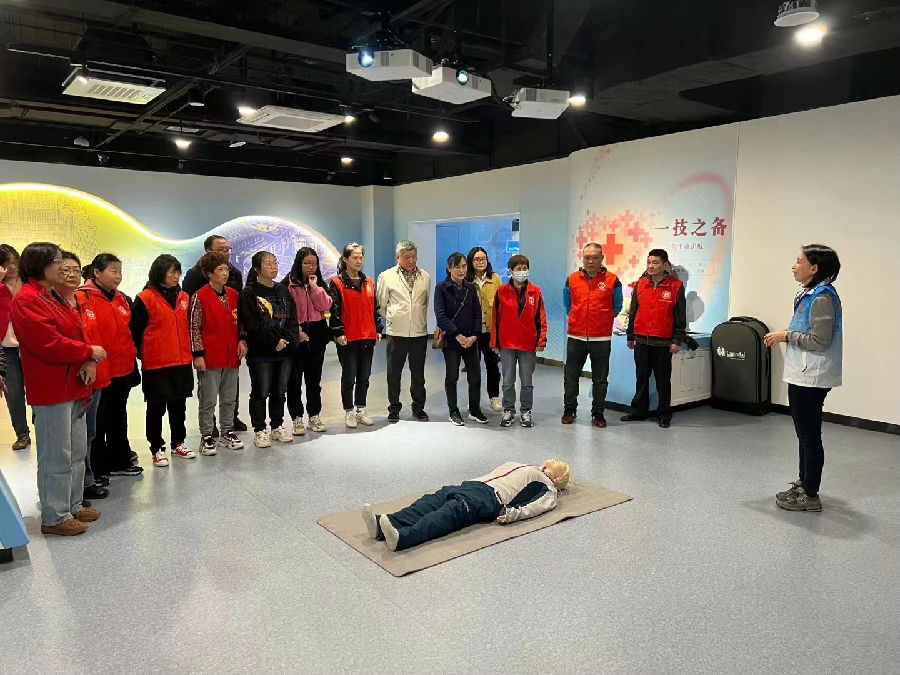 活动中,红十字救护培训师周春兰为大家进行了救护基本知识以及心肺复苏(CPR)专题培训。大家在周老师的精心讲解和实操指导下,完成了心肺复苏练习,掌握了应急救护的基本要领。