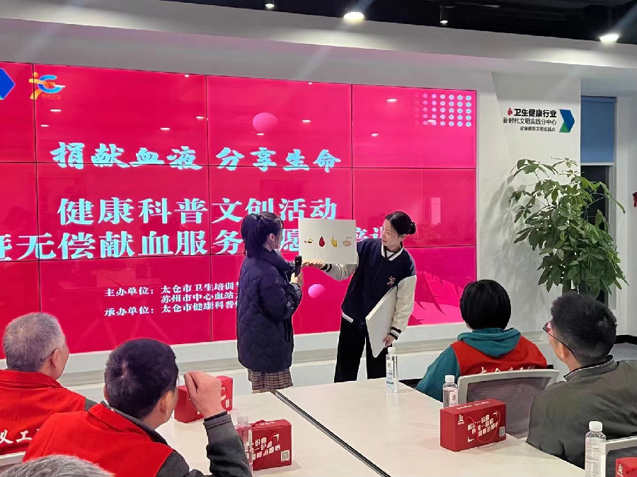 近日,苏州市中心血站太仓分站联合太仓市卫生培训与健康促进中心,在健康科普体验馆开展无偿献血服务志愿者专场文创活动,弘扬“人人享健康共同促健康”的世界卫生日主题,倡导“捐献血液 分享生命”的精神。