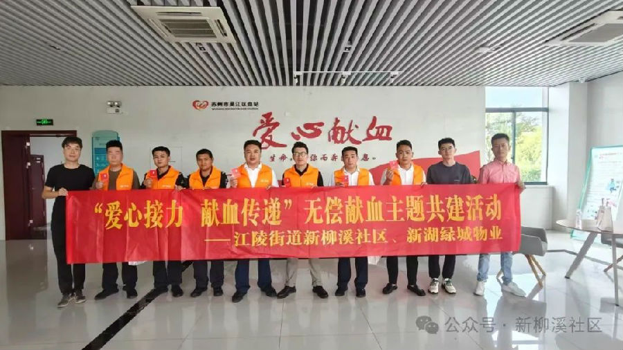 近日,吴江新柳溪社区红十字博爱家园与新湖绿城物业联合开展“爱心接力,献血传递”无偿献血主题共建活动。