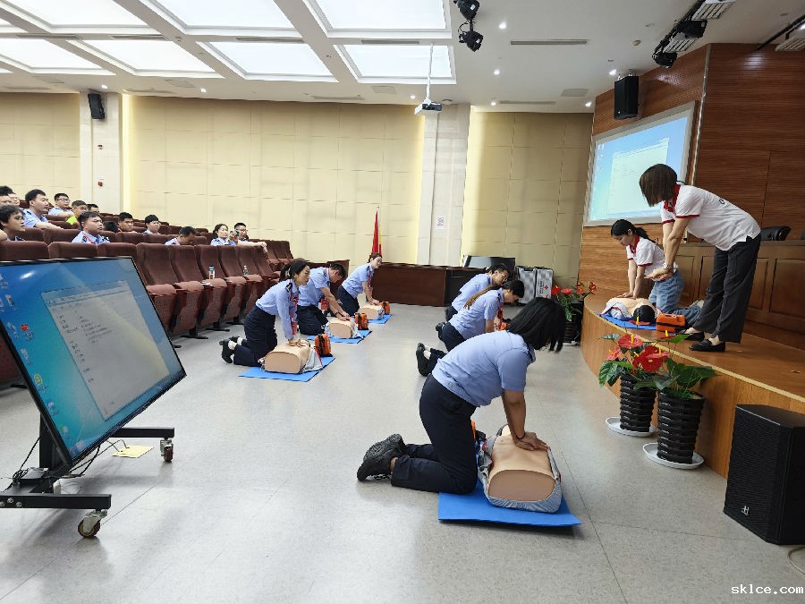 培训现场,红十字救护培训师采取理论知识与实操相结合的教学方式,用生动有趣的语言向参训学员介绍了意外伤害、心肺复苏等理论知识,对心肺复苏术、AED使用进行现场示范操作,并结合身边的具体案例,深入浅出地向大家讲解了现场急救的注意事项。