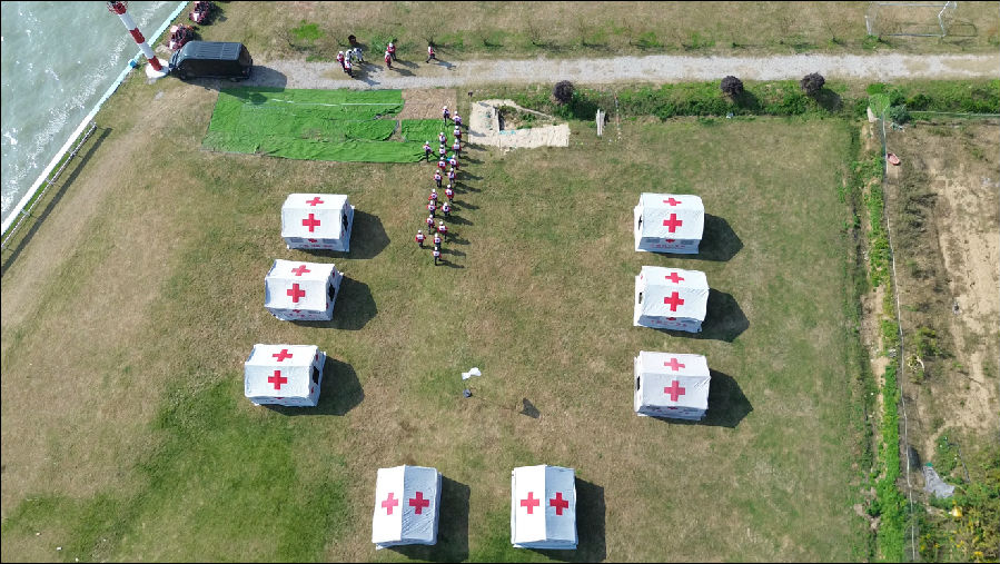 本次演练的教官由参与过2025年度东部协作区演练的骨干队员担任,设置“赈济救援”与“大众卫生”两大专业课程。课程通过知识讲解、桌面推演、现场实操等多种形式,系统传递新时代红十字救援的前沿知识与实用技能。